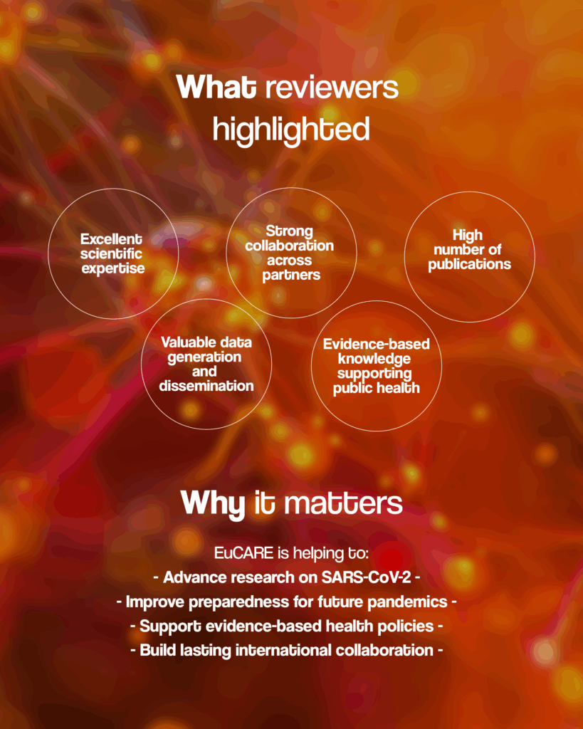 The reviewers praised the high number of publications, the relevant data, and the evidence-based knowledge obtained on the SARS-CoV-2 epidemic. In addition to the scientific quality, they also highlighted the excellent problem-solving skills, flexibility in an ever-changing context, endurance and engagement in continuing the project.